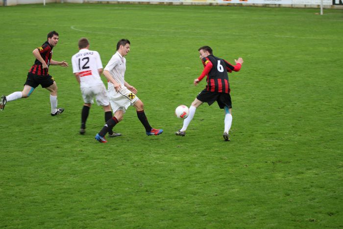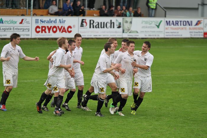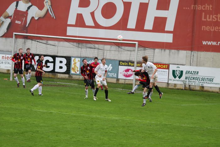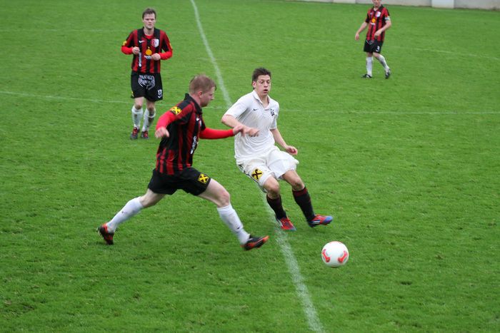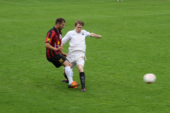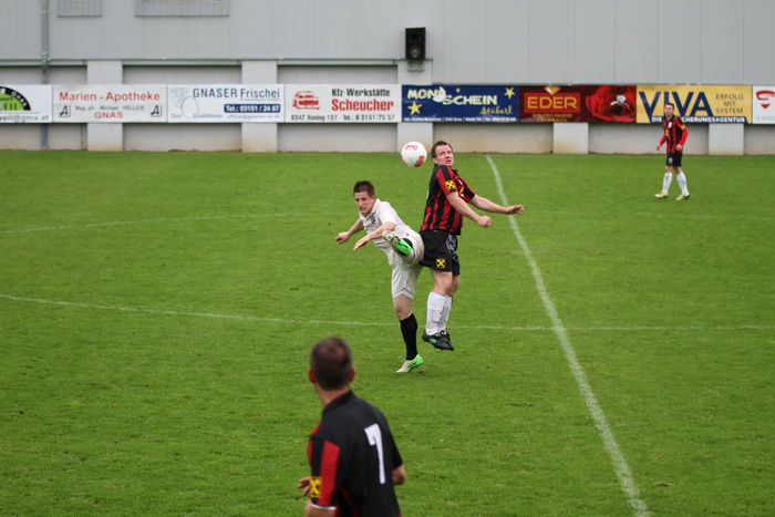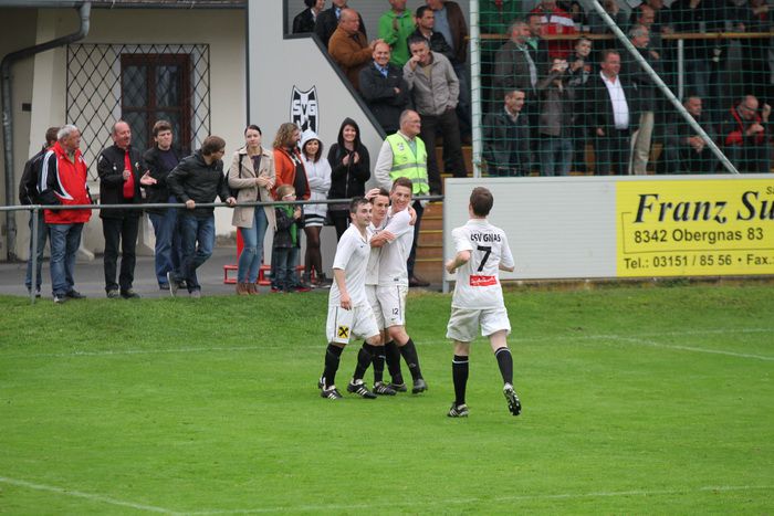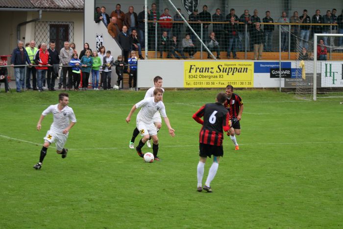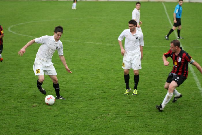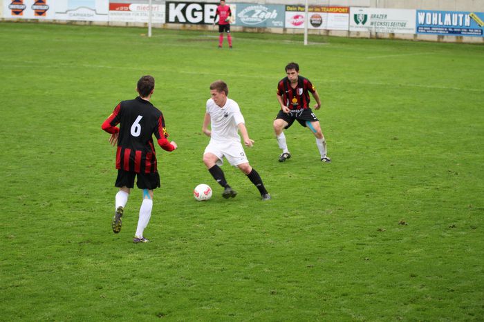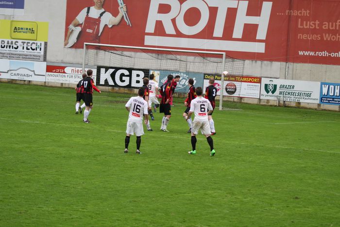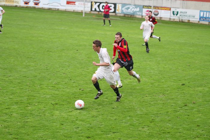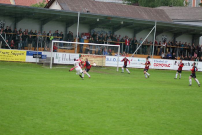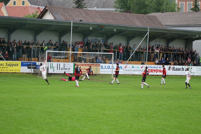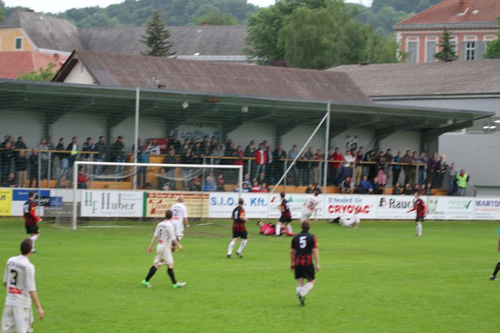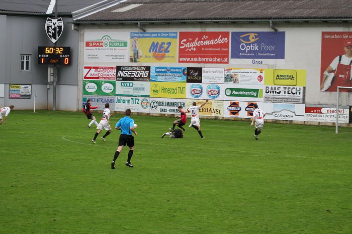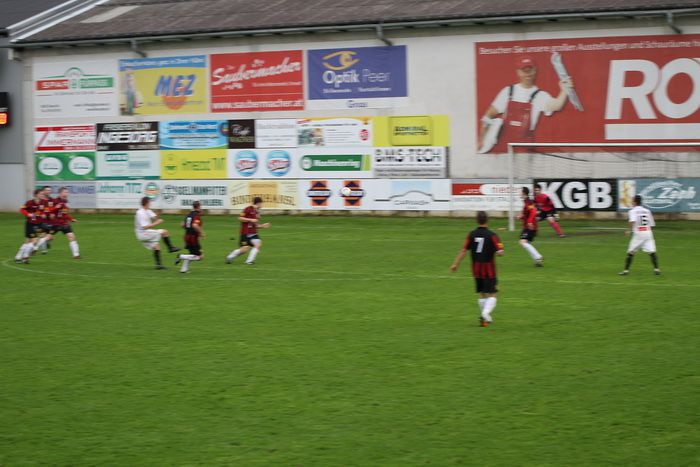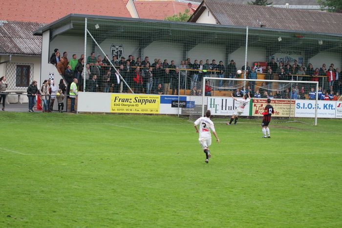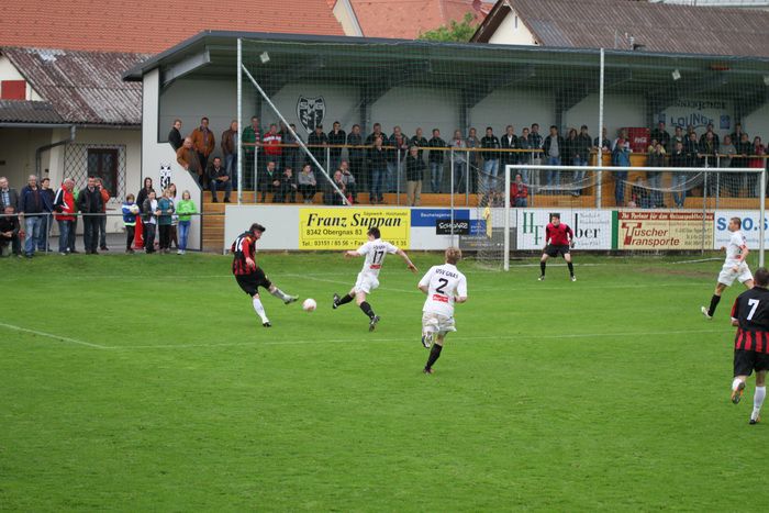 Wenig später das erste Lebenszeichen der Gäste. Reinhard Kraussler versuchte den Abschluss aus rund 20 m, der Ball zog am langen Eck vorbei (31.). In der 38. Minute kam Matthias Schadler in halblinker Position aus rund 18 m zum Abschluss, der Ball ging links am Pfosten vorbei. Ein schöner Schuss von Rene Obendrauf konnte von Torhüter Schweighofer mit Parade zur Ecke abgewehrt werden (42.). Auf der Gegenseite versuchte es Gernot Kraussler, doch der Ball verfehlte das Ziel (43.).