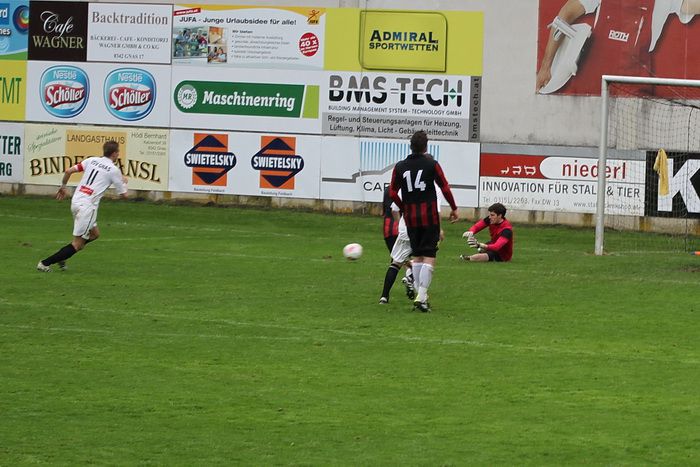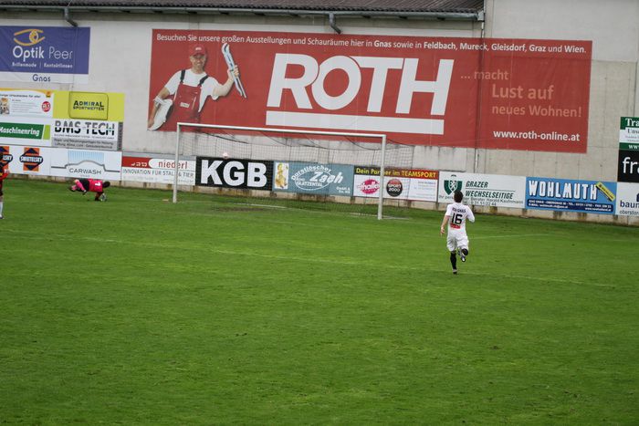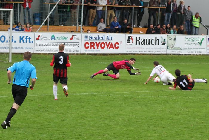 Die Riesenchance auf den Ausgleichstreffer fanden die Gäste in der 60. Minute vor. Der Ball wanderte über mehrere Stationen zu dem auf der linken Seite in Stellung gelaufenen Mario Pötz. Der Flachschuss aus spitzem Winkel verfehlte das leere Tor sehr knapp, am langen Eck kam Balazs Kiss um einen Schritt zu spät.