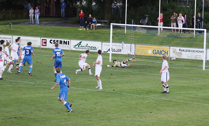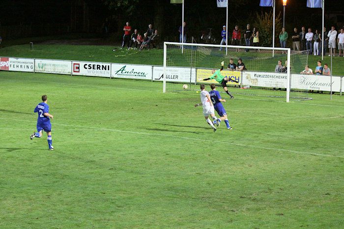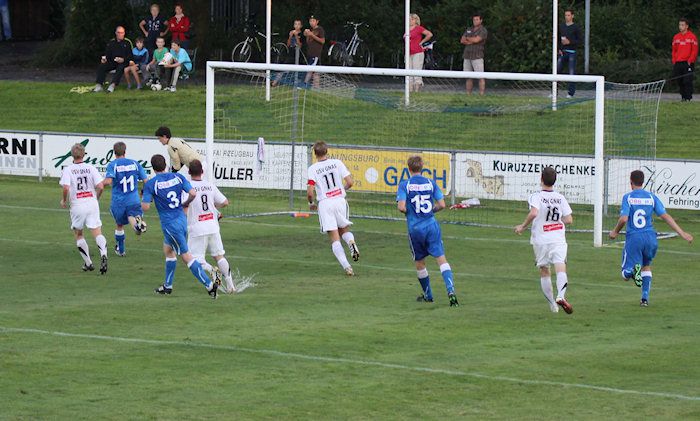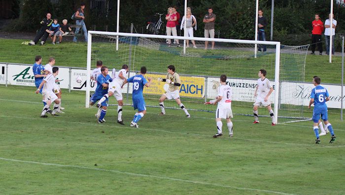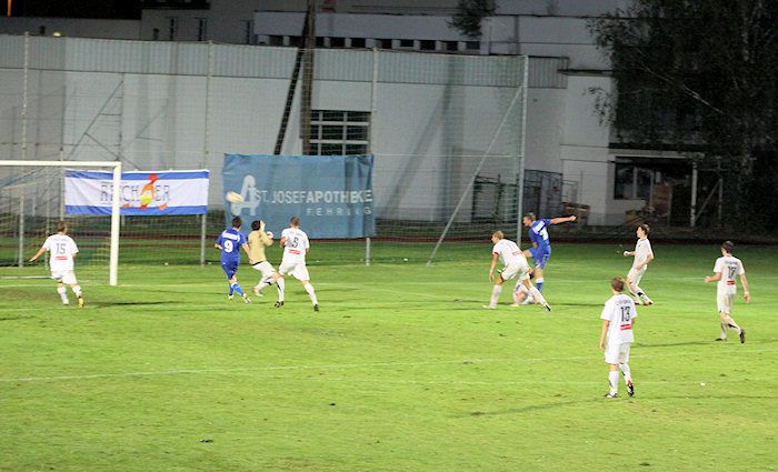 Fehring-Torhüter Winkler kann den Kopfball von Daniel Haas nach einem Freistoß abwehren (10.).