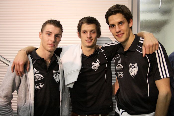 Die Torschützen Kölldorfer und C.Schadler mit Tormann Roth (von links).