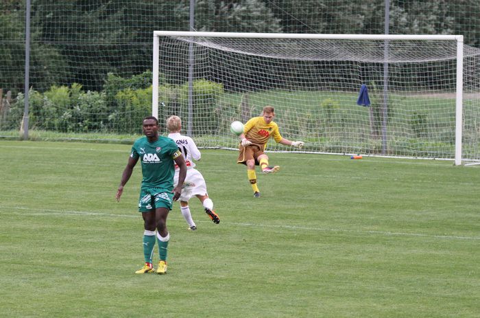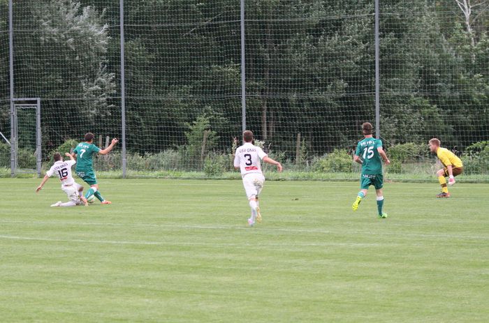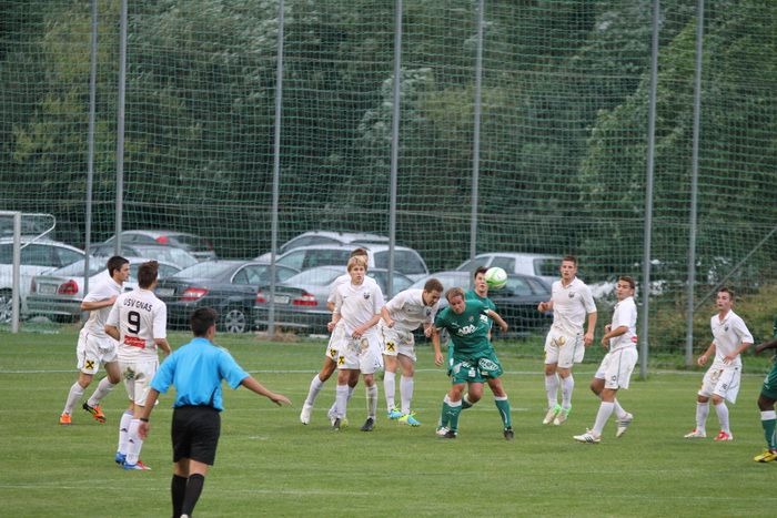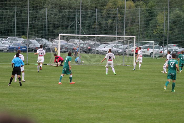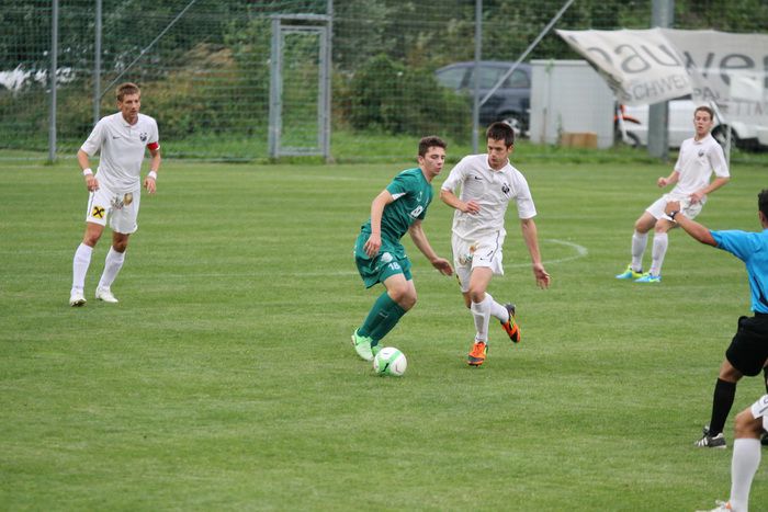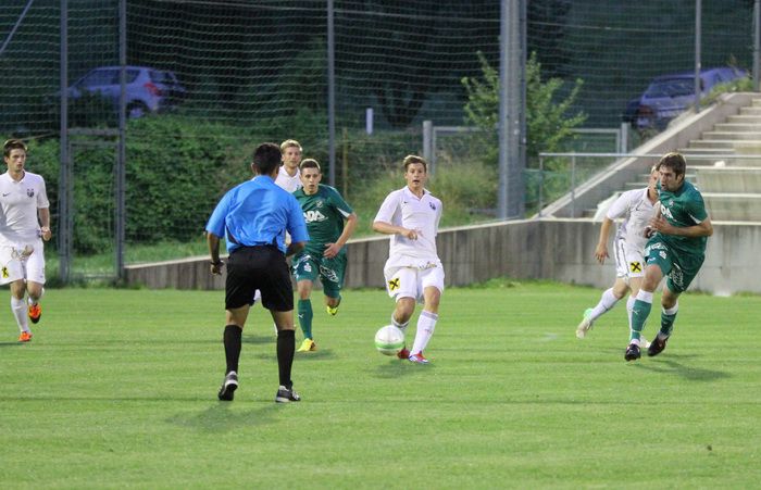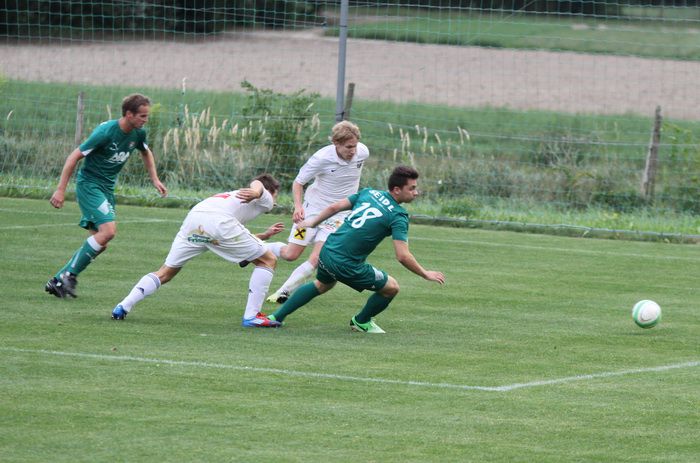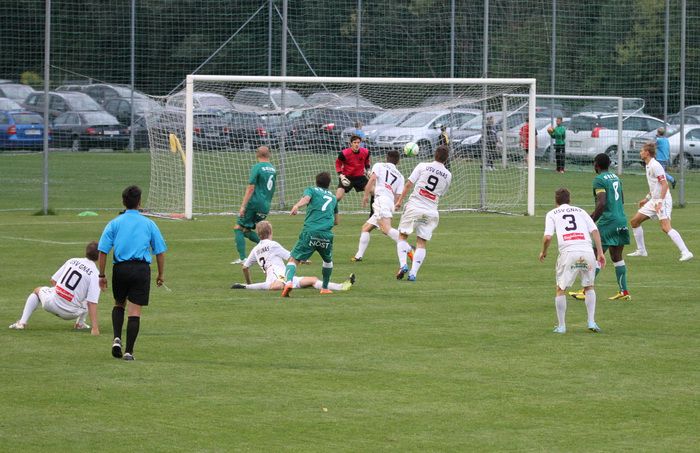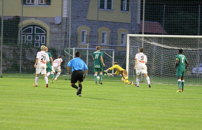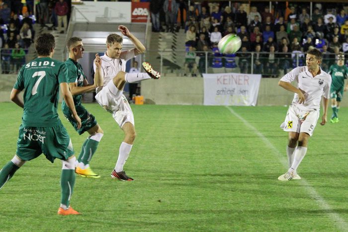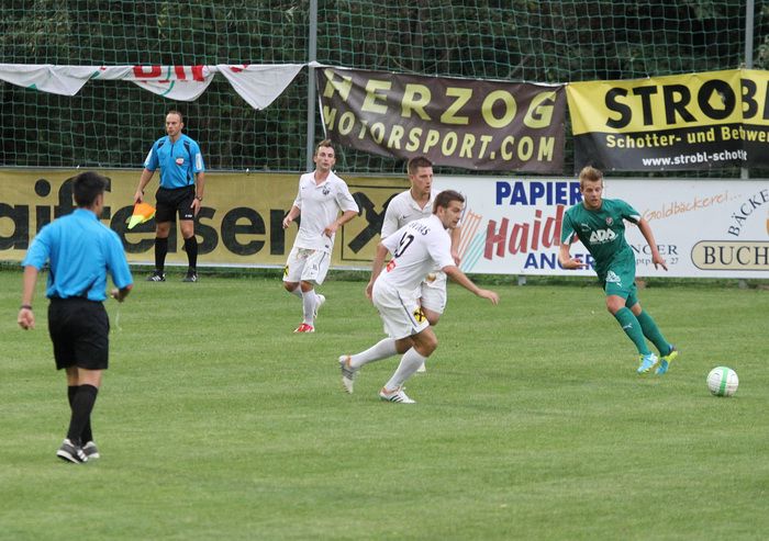Auf der Gegenseite wurde ein Schussversuch von Andreas Lackner nach schönem Pass von Christian Fink gerade noch von David Zink geblockt (24.). Zink versuchte es wenig später mit einem Sololauf, der Abschluss misslang, denn der Ball ging rechts am Tor von Roth vorbei (26.). Im Gegenzug testete Matthias Schadler mit einem Distanzschuss den gegnerischen Keeper, Faist konnte mit Parade zur Ecke klären.