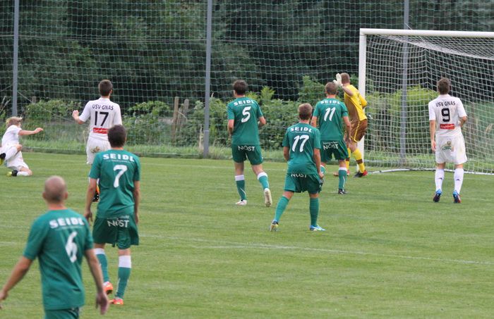 Die Gnaser versuchten auch in der 2. Halbzeit die Gastgeber unter Druck zu setzen, was Zählbares schaute aber nicht heraus. Auch, weil sich die Gnaser im gegnerischen Strafraum nicht entscheidend durchsetzen konnten. Nach einer Ecke, von Matthias Schadler getreten, kam der Ball schließlich zu Lackner, der Gnaser Mittelfeldspieler traf beim Schussversuch vom linken 5er-Eck den Ball aber nicht voll, sodass Keeper Faist den Ball halten konnte (58.). Matthias Schadler hatte in der 65. Minute seinen stärksten Auftritt. Einen herrlichen Schuss konnte Faist zur Ecke hechten, nach abgewehrten Eckball versuchte Schadler abermals den Abschluss, der Ball zischte am rechten Eck vorbei.