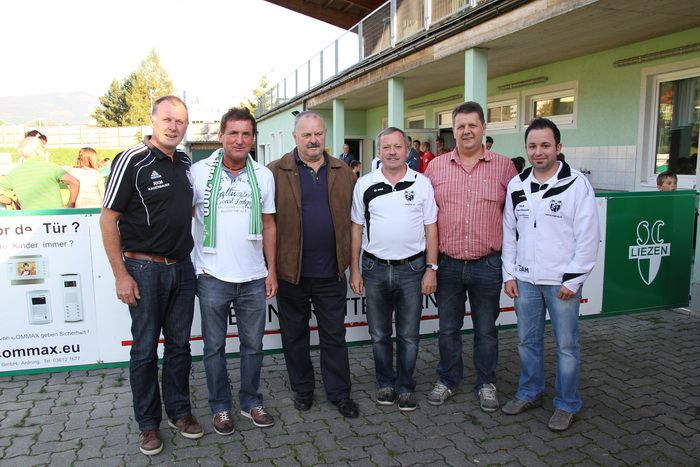 von links: Gnas-Präs.Schwarz, Liezen SL und Manager Rohrer, Liezen-Obmann Pamberer, Luis Niederl, Gnas-SL.Stv. Sägner und Gnas-SL Trummer.