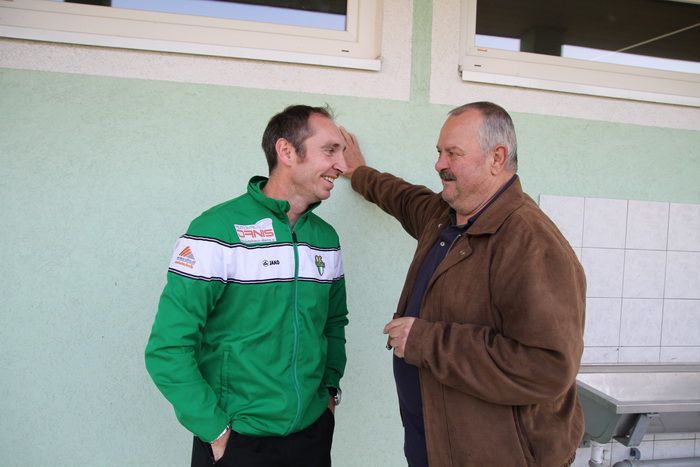 Liezen-Trainer Stradner (links) im Gespräch mit Liezen-Obmann Pamberer.