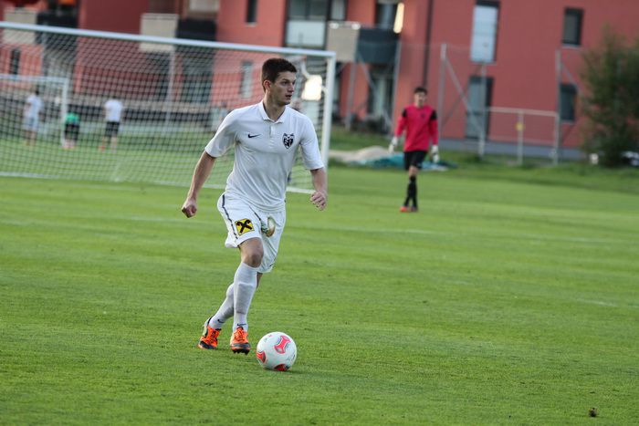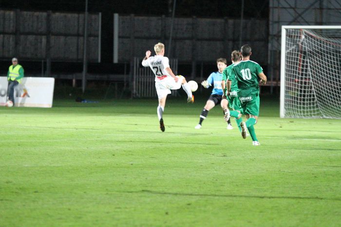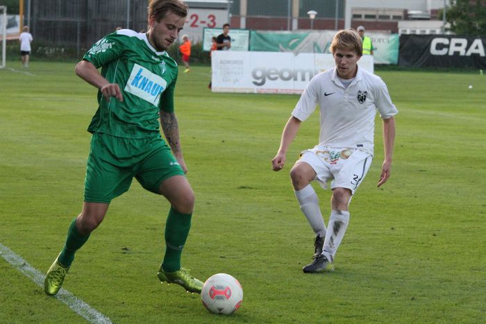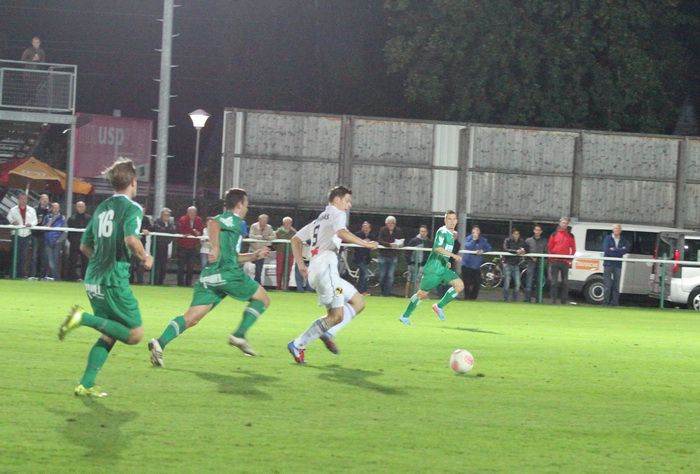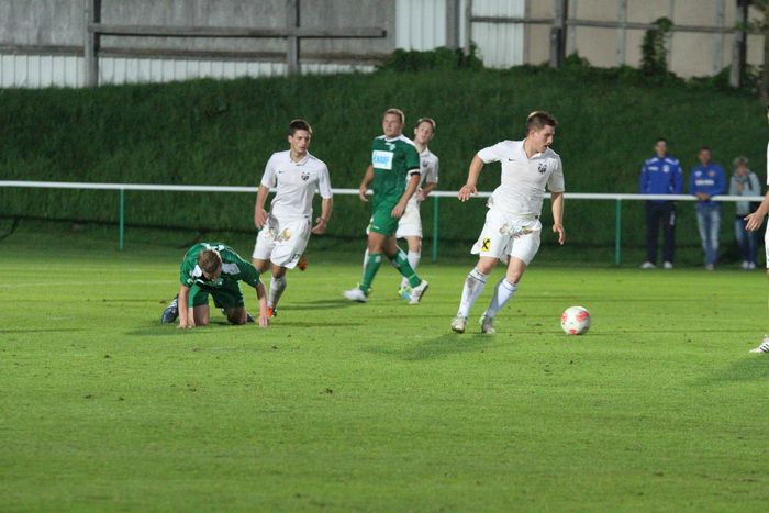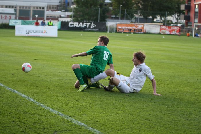 Matthias Schadler (Nr.6) vergibt eine schöne Hereingabe von C. Fink (19.), die Abwehr kann bereinigen.