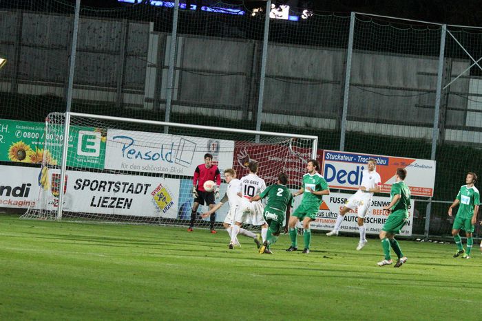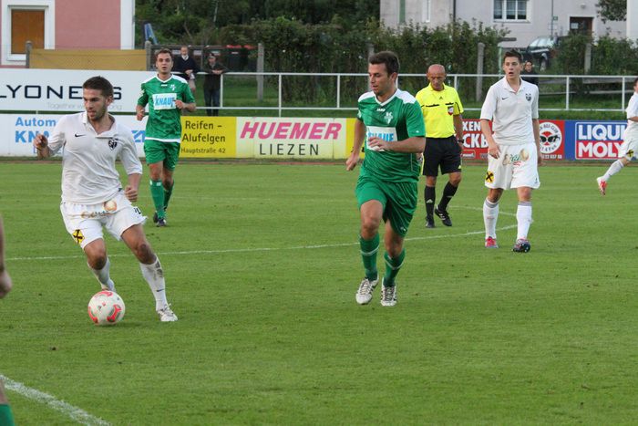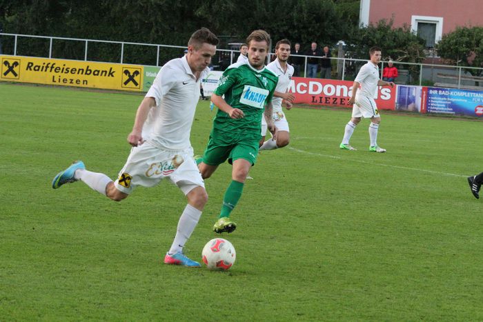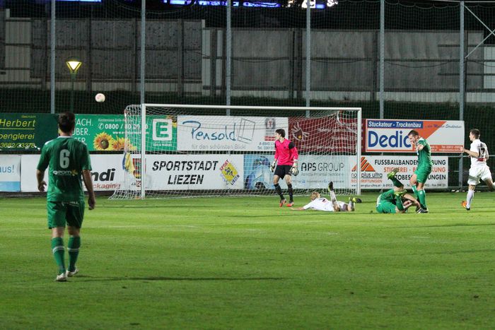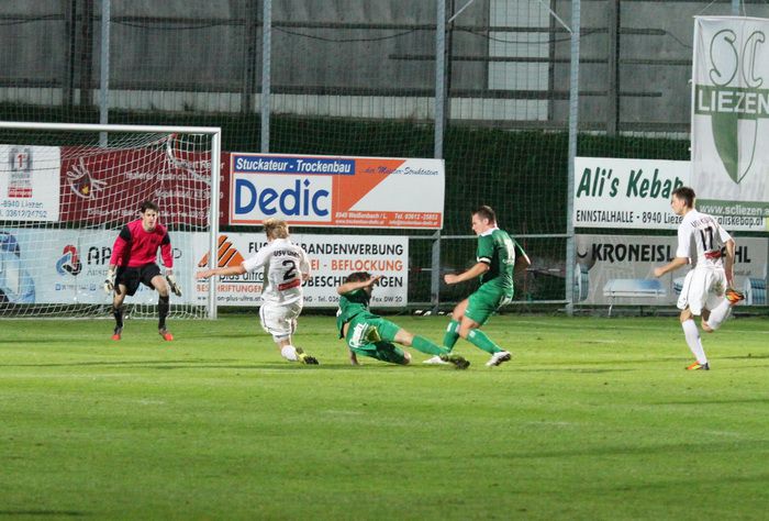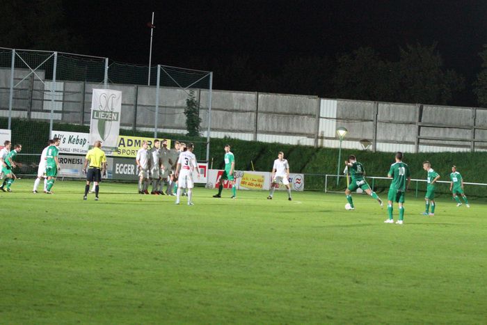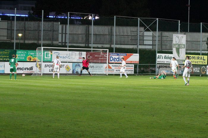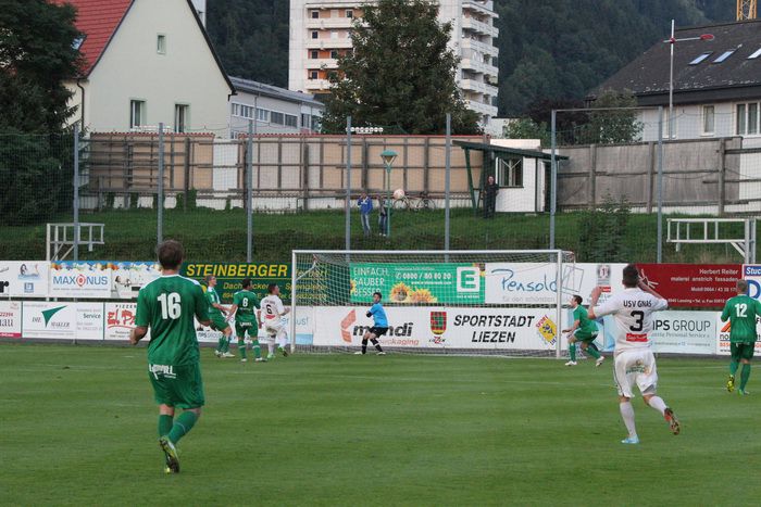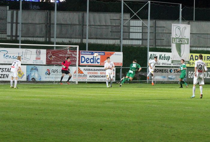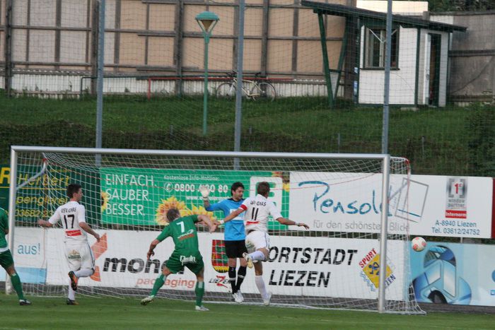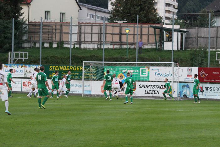 Auch die Hausherren fanden eine gute Chance vor. Nach einem Eckball brachte ein Liezener, der an der zweiten Stange stand, den Ball per Kopf zur Mitte, Michael Schwaiger kam völlig freistehend ans Leder und köpfelte knapp über die Querlatte (33.).