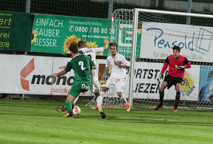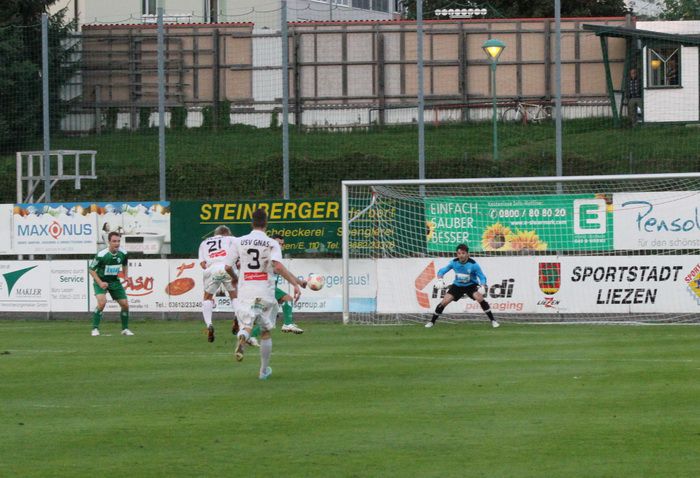 In der 31. Minute eine weitere gute Möglichkeit für die Gäste aus Gnas. Nach einem Eckball konnte Liezen-Torhüter Micic einen Kopfball von Christoph Haas mit Parade zur Ecke hechten.