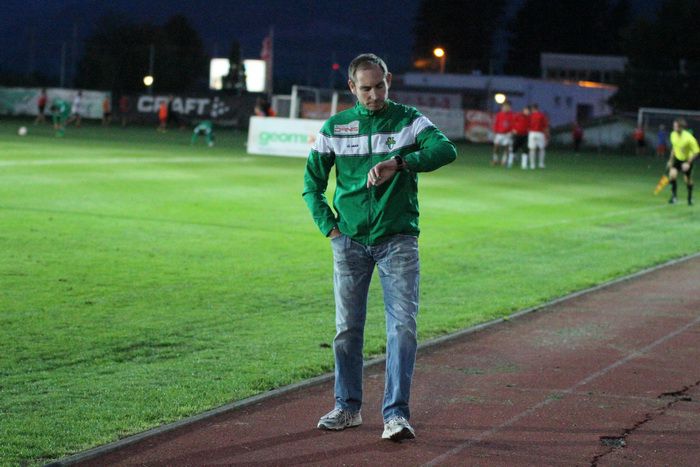 Gnas-Trainer Christian Puntigam schreitet nach der Pause zur Betreuerbank.
