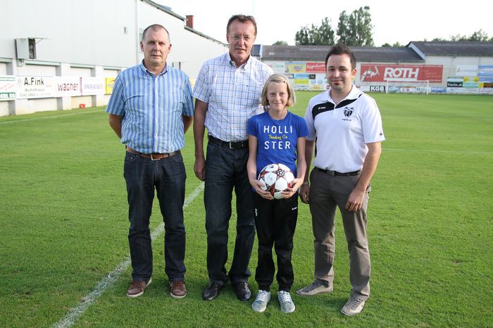 Die Firma MEZ spendete Match- und Matchball. Ewald Roth mit Tochter Paula, Präs. Schwarz und SL Trummer.