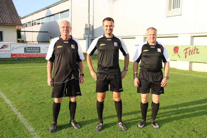 Das Schiri-Team: SR Kollegger (mitte) und die Ass.Reinbacher (rechts) und Ruprechter.