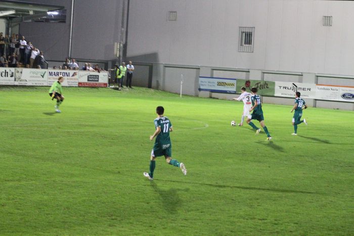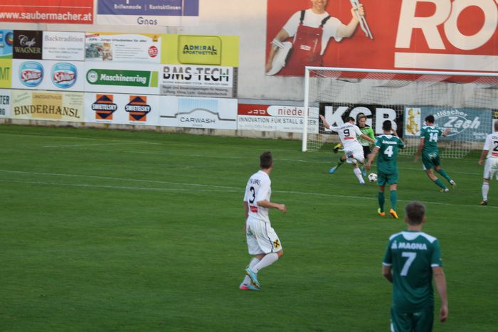 In der 34. Minute versuchte Kniewallner im gegnerischen Strafraum mit einem herrlichen Volleyschuss den gegnerischen Keeper zu bezwingen, doch Leitner wehrte mit Reflex auf die Seite ab, die Verteidigung konnte befreien.