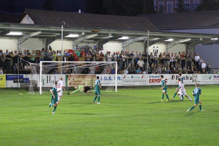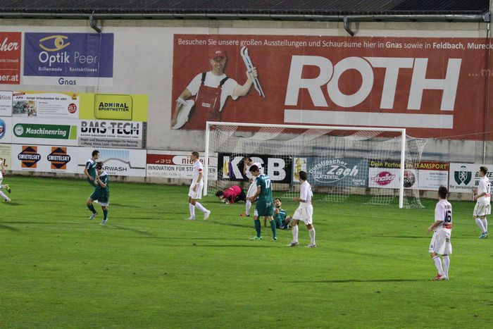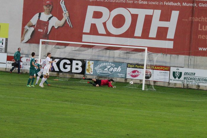 Bei einem Konter der Gnaser über die linke Seite wollte Lackner zur Mitte flanken, dabei beging Krempl im Strafraum ein Handspiel, das auch von SR Kolleger sofort geahndet wurde. Daniel Haas, der Elferschütze vom Dienst, scheiterte an der Fußabwehr des gegnerischen Keepers, zwei Nachschüsse wurden geblockt bzw. abgewehrt (52.).