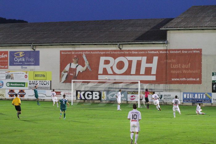 Einen Freistoß von M. Schadler konnte Gleisdorf-Goalie Leitner wegboxen (7.) und in der 10. Minute schlug es im Gleisdorfer Gehäuse ein. Christian Fink verfolgte den Gleisdorfer Kreimer und erkämpfte einen Outeinwurf. Über Kniewallner und C. Fink kamen die Gnaser in den Strafraum, die Gäste-Abwehr brachten den Ball nicht weg und Daniel Haas nützte die Chance zur frühen 1:0-Führung. Haas schob den Ball am Torhüter vorbei ins rechte Eck.