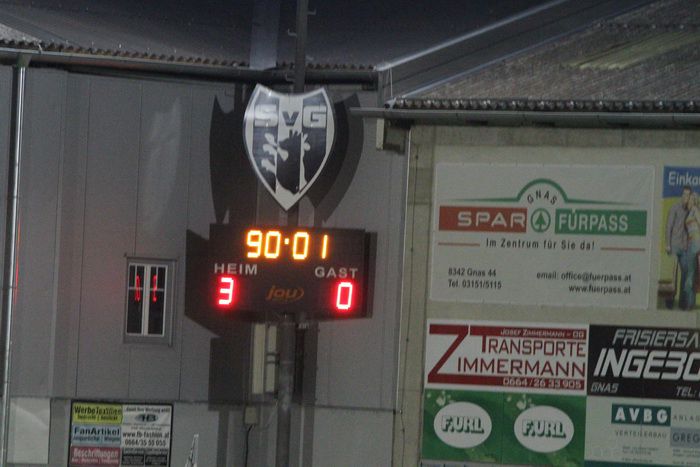 Jetzt verwalteten die Gnaser den Vorsprung, die Gleisdorfer kamen kaum noch zu Chancen und so blieb es auch bis zum Schlusspfiff durch SR Kollegger beim 3:0. Die Sensation war perfekt und Tabellenführer Gleisdorf war mit dem ersten Punkteverlust die Tabellenführung los.