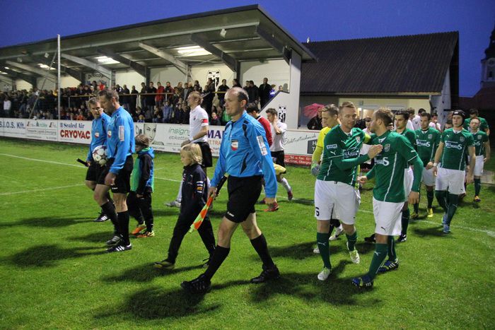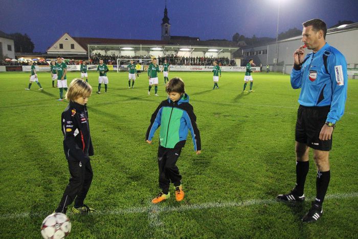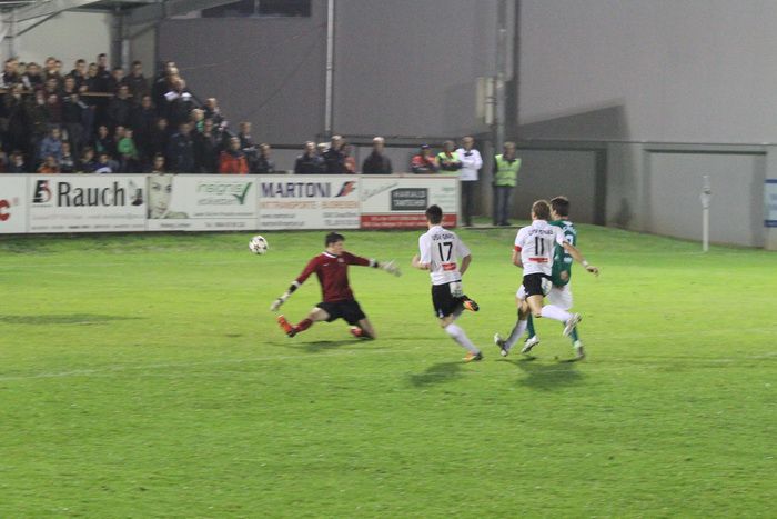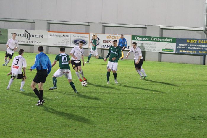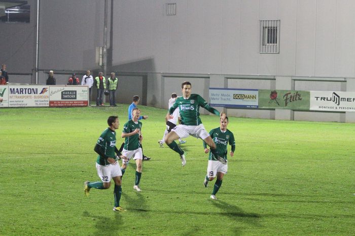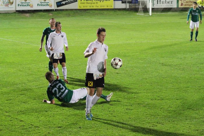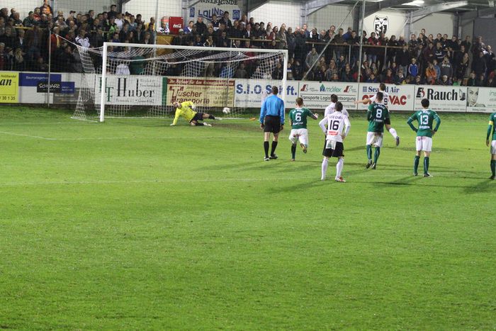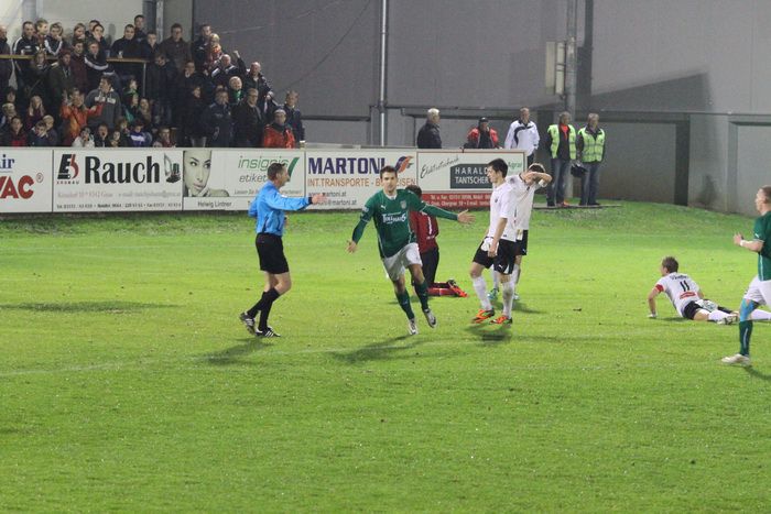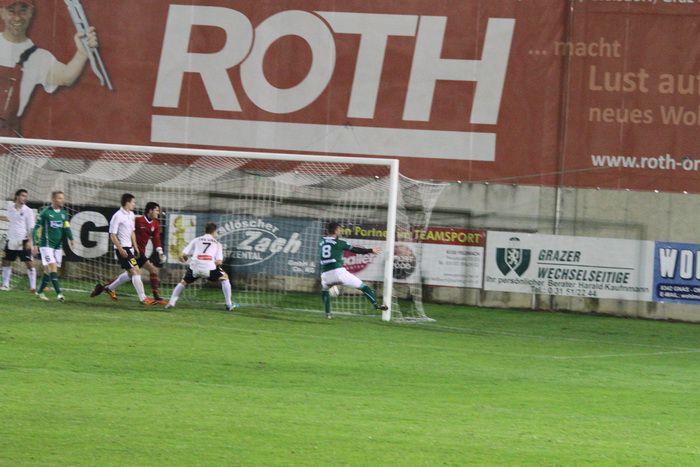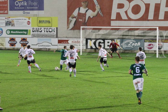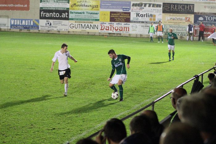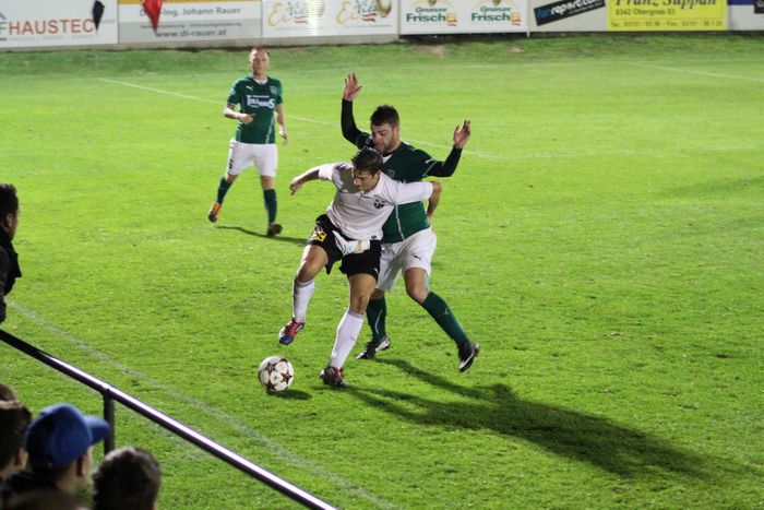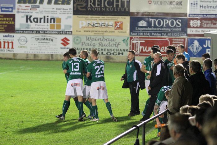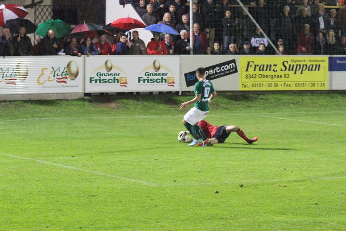 In einem recht ausgeglichenen Spiel ließen beide Abwehrreihen kaum Chancen zu, das änderte sich aber in der 24. Minute. Lackner setzte sich auf der halblinken Seite im Duell mit Kevin Hacker durch und stürmte in den Strafraum. Dabei beging Hacker ein Foul an Lackner, SR Kressl zeigte auf den Punkt und Hacker die gelbe Karte. Daniel Haas ließ sich diese Möglichkeit nicht entgehen und verwandelte den Strafstoß sicher zur vielumjubelnden 1:0-Führung. Spätestens jetzt spekulierte man auf eine weitere Überraschung, doch die Weizer spielten da nicht mit.....