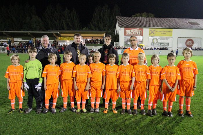 In der Pause gibt es für die Gnaser U10 neue Dressen von der Fa. Harald Tantscher aus Obergnas 59.