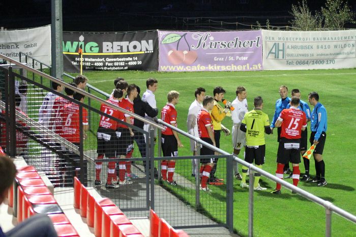 In der letzten Runde verloren beide Mannschaften ihre Spiele und Wildon fiel auf den 14. Platz zurück, auch Gnas büßte einen Platz ein und rangiert nun auf dem 6. Platz der Tabelle. Welches Team würde in diesem Derby wieder auf die Siegerstraße zurückkehren, das war die Frage. Sowohl bei den Hausherren (Spahic) als auch bei den Gnasern (Klenner) fehlte je ein Spieler aufgrund der fünften gelben Karte. Bei den Gnasern spielte anstelle von Klenner, Tobias Puntigam auf der rechten Außenverteidigerposition.