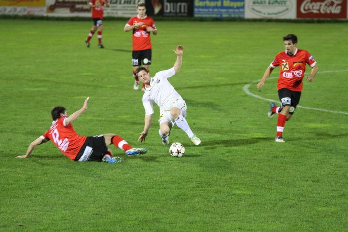 Gnas-Mittelfeldspieler Andreas Lackner (Nr.16) im Duell mit Bauer.