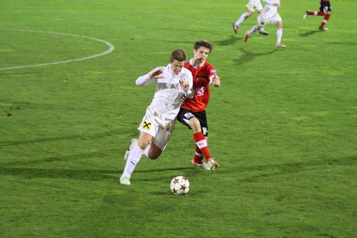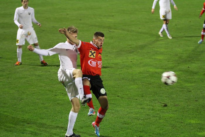 Tobias Puntigam (links) gegen Dino Kovacec, dem Torschützen zum 1:0.