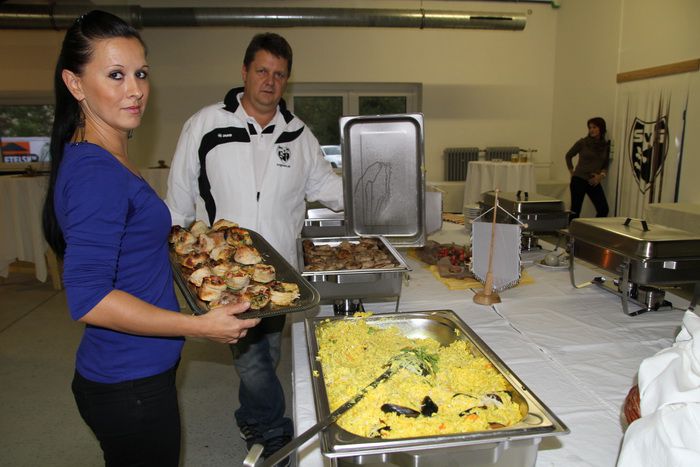 Mahlzeit! VIP-Versorgerin Petra, Chefin der Pizzeria LAS PAPPAS in Gnas mit VIP-Chef Sägner.