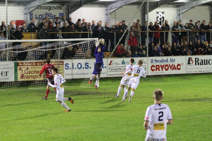 ...Goalie Stocker hechtet den Ball zur Ecke (93.).