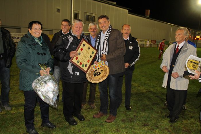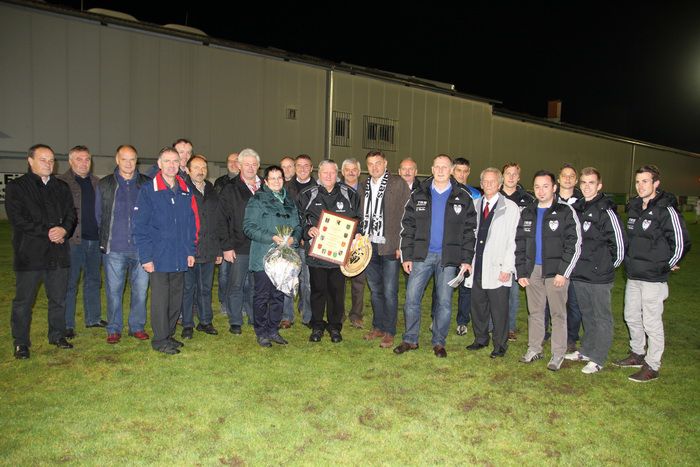 ...auch eine Schar von U20-Spielern aus dem Jahr 1973 versammelt sich zuletzt mit den Gratulanten zu einem Gruppenfoto.