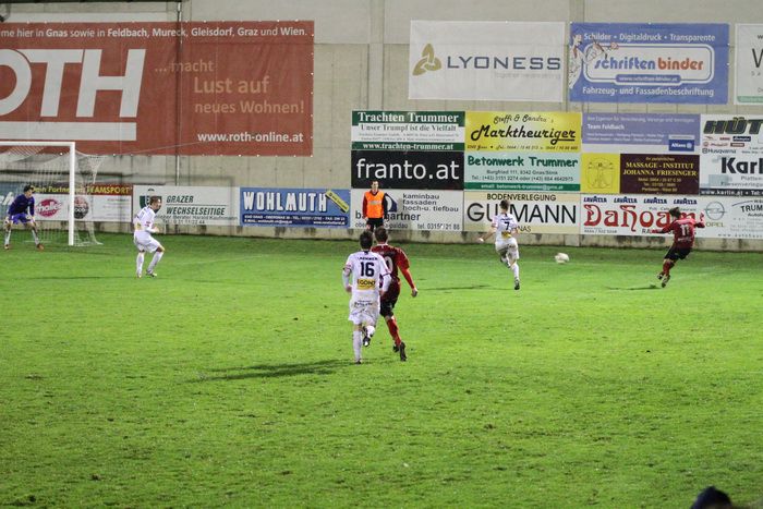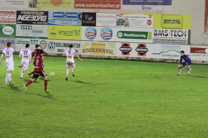 Erst in der 29. Minute fanden die Gnaser die erste, allerdings gute Gelegenheit vor. Lackner bediente Tobias Puntigam, aber der für Obendrauf in die Startelf gekommene Mittelfeldspieler schob den Ball an Torhüter Stocker und am Tor der Fürstenfelder vorbei.