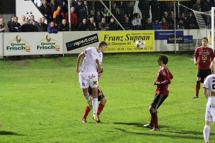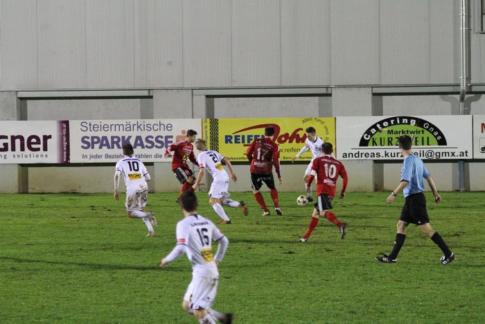 Als Tabellennachbarn (7.gegen 8.) ging man in dieses Derby. Fürstenfeld siegte in der Vorwoche daheim gegen Frohnleiten 4:1, Gnas verlor das Spiel gegen Wildon auswärts 1:2. Die Fürstenfelder hatten im Herbst erst einen Auswärtspunkt auf dem Konto, die Gnaser machten in den letzten 4 Spielen nur drei Punkte. Für die Gnaser vielleicht die Chance, die Auswärtsschwäche der Gäste zu nutzen und nach der zuletzt mageren Punkteausbeute wieder einmal voll punkten zu können. Da es Stunden zuvor geregnet hatte, war der Platz zwar tief, aber bespielbar. Die Gnaser nussten auf Obendrauf verzichten, der sich am Dienstag beim Training eine Schulterverletzung zugezogen hatte. Auch die Fürstenfelder konnten nicht die komplette Mannschaft aufbieten.