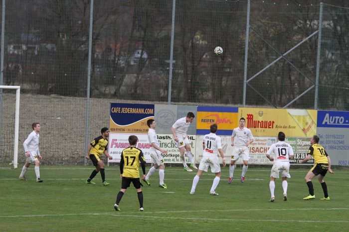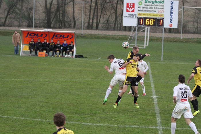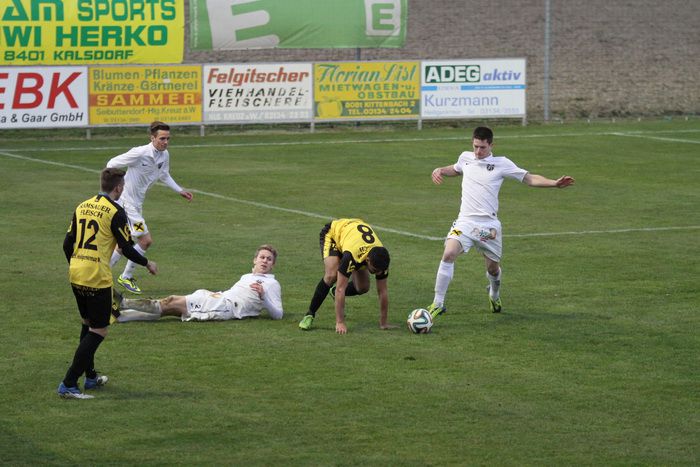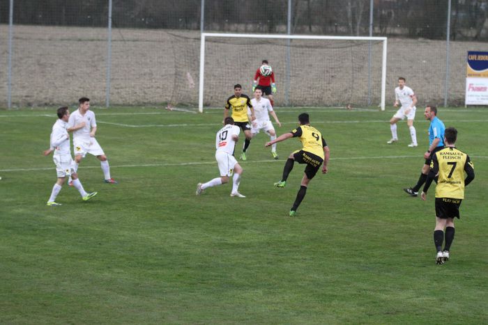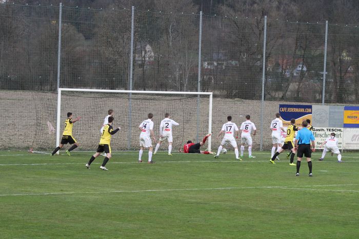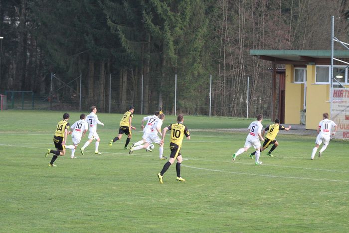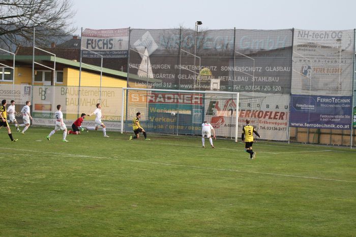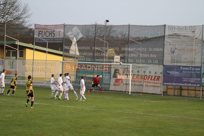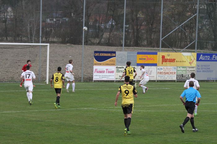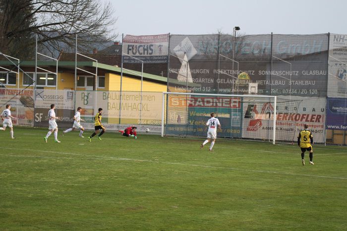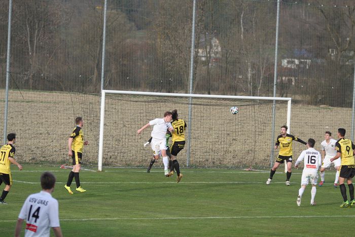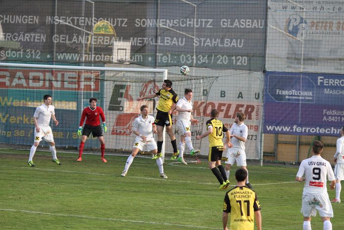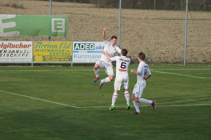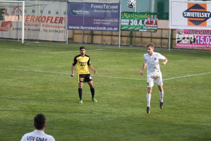 Die Gäste aus Gnas erholten sich aber bald vom Schock und kamen in der Folge einige Male vor das Tor der Hausherren, bei denen Torhüter Palz einen nicht ganz sicheren Eindruck machte. 15. Minute: Einen weiten Outeinwurf von Matthias Schadler von der linken Seite verlängerte Rene Obendrauf per Kopf zur Mitte, der Schussversuch von Raphael Kniewallner wurde geblockt, Daniel Haas behielt im Tumult die Übersicht und schoss zum 1:1 ein.