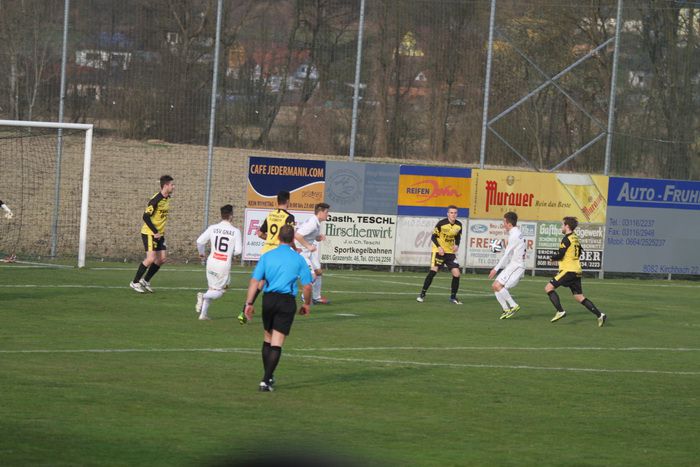 Nach einem schnellen Konter der Gnaser flankte Rene Obendrauf von der rechten Seite zur Mitte, Daniel Haas, der mitgelaufen war, setzte per Kopf den Ball an die Querlatte (35.). Auf der anderen Seite zog Bloudek im Gnaser Strafraum ab, verfehlte aber das Tor von Roth (39.). Pausenstand 1:1.