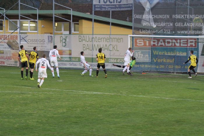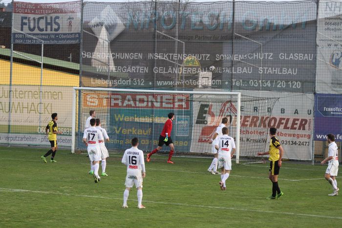 Eine Riesenmöglichkeit für Hlg.Kreuz vergab Daniel Hofer in der 63. Minute nach einer Flanke von Bloudek. Hofer köpfelte in aussichtsreicher Position über das von Roth gehütete Tor der Gäste aus Gnas. Gleich darauf konnten die Hausherren bei einem Angriff über die rechte Seite nichts Zählbares herausholen. Mohsenzada jagte die Kugel aus spitzem Winkel über die Querlatte (64.). Einen von den Hausherren getretenen Freistoß von der rechten Seite konnte Roth abwehren, die Verteidigung konnte in der Folge erfolgreich klären.