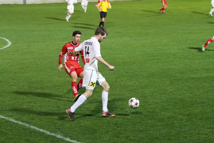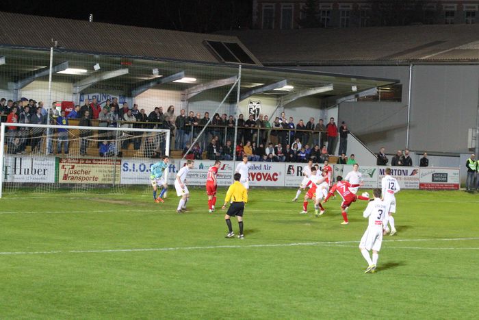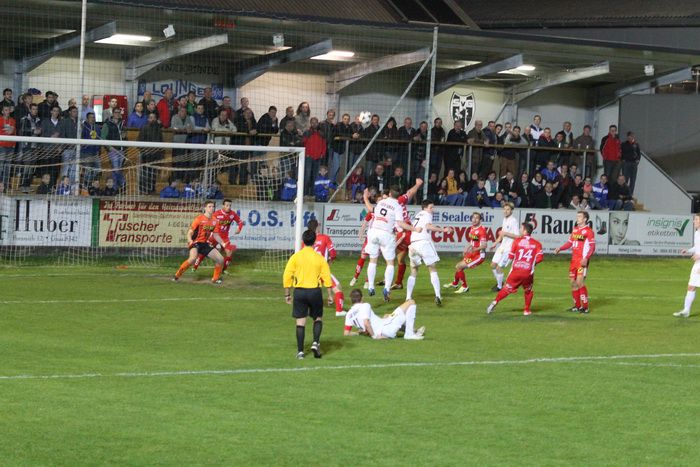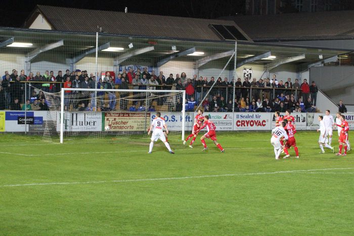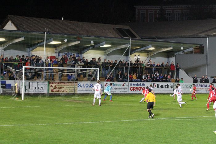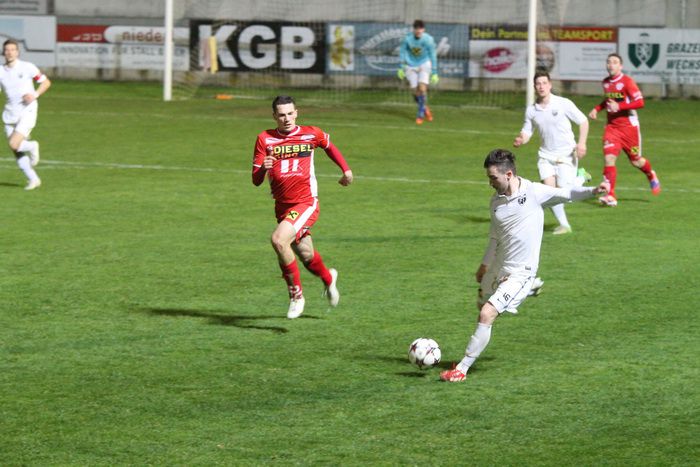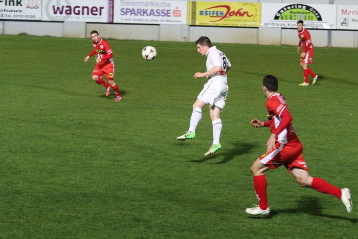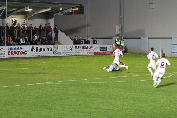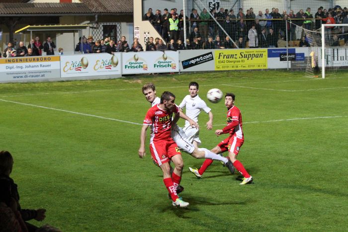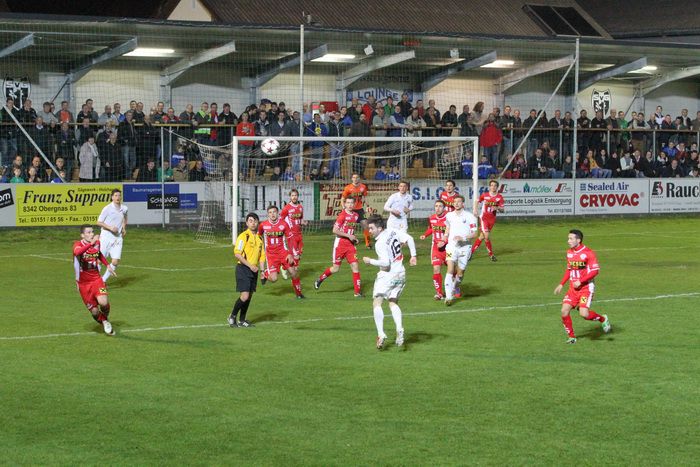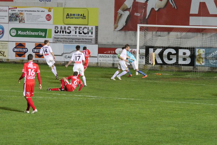 Nach einem Eckball verfehlt Christoph Haas per Kopf das Tor von Stelzl (76.).