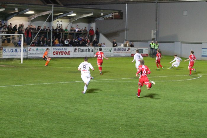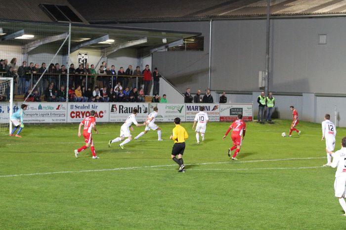 ...kurz vor Schluss kontern die Gäste noch einmal gefährlich, der kurz zuvor ins Spiel gekommene Zirngast schießt...