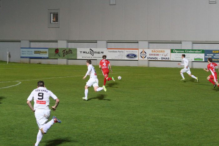 Die Gnaser ließen aber nicht locker und drängten weiter auf den Ausgleich. Ein Lackner-Schuss aus 14 m verfehlte das Tor nur knapp (66.). Daniel Haas köpfelte einen Wohlmuth-Eckball übers Tor (68.).