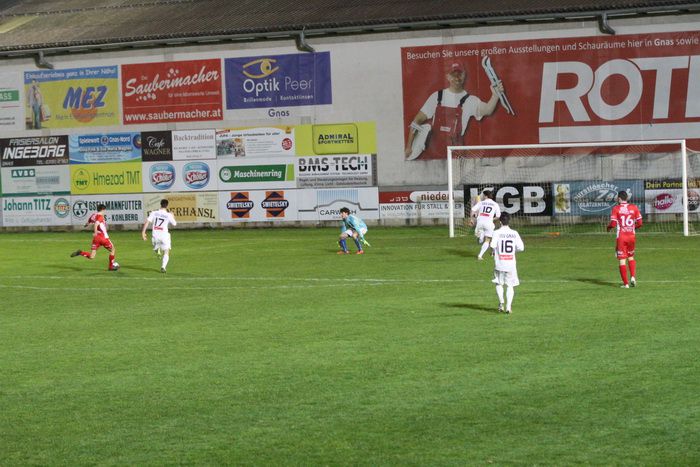 In der 27. Minute gingen die Gäste 1:0 in Führung. Rodler stürmte auf der rechten Seite in den Gnaser Strafraum und legte zurück zu Nikolas Missethan, mit einem Volleyschuss aus rund 10 m gab er dem Gnaser Torhüter Alex Roth das Nachsehen.