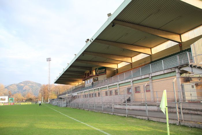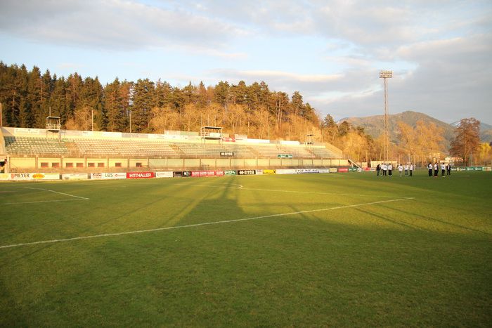 Das riesige Stadion in Leoben Donawitz, die Westseite.