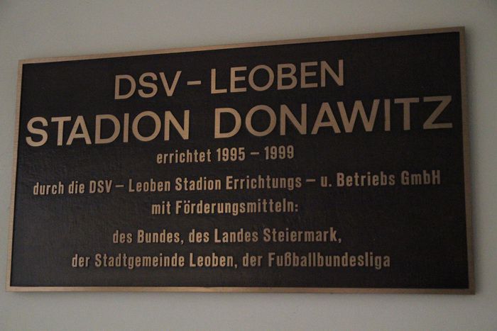 Die Erinnerungstafel an den Bau im Innern des Stadions.