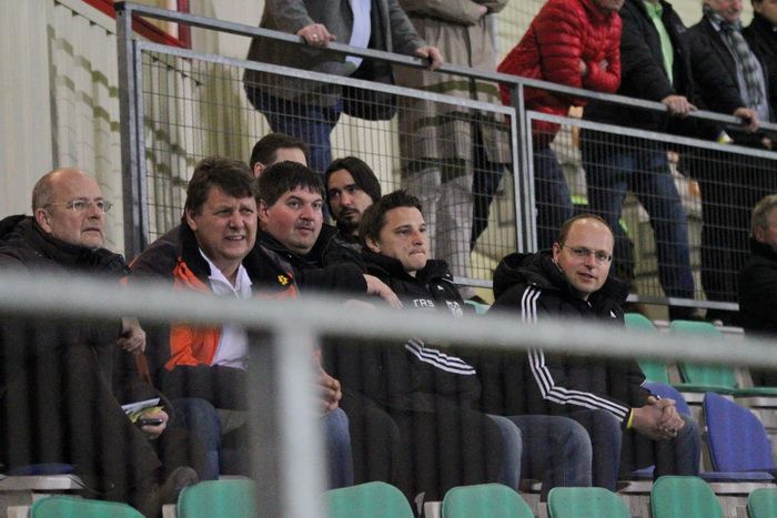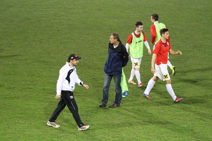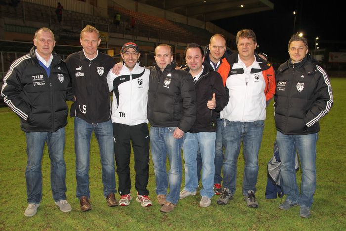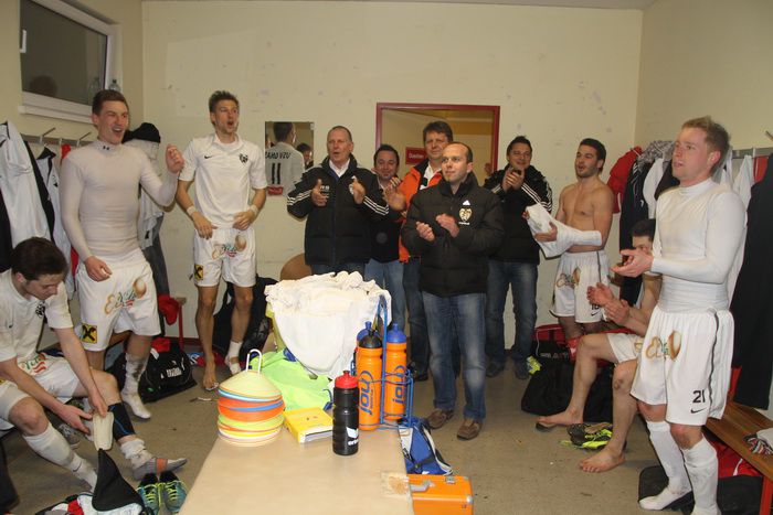 Auf dem Weg in die Kabine. Trainer Puntigam und Suppan sowie die Spieler Lackner, Kniewallner und Daniel Haas.