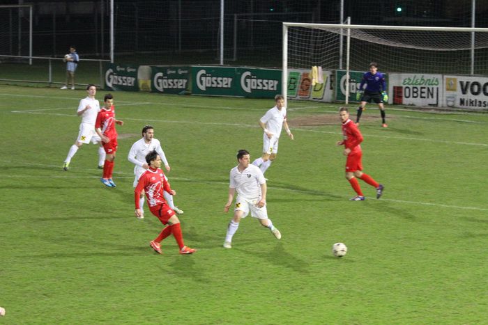 29. Minute: Gnas-Verteidiger Zimmermann schaltete sich auf der linken Seite in den Angriff ein und flankte in den Strafraum. Daniel Haas legte per Kopf quer zu Rene Obendrauf, der von der linken Seite kommend, plötzlich vor Torhüter Petrovcic auftauchte und sich diese Chance nicht nehmen ließ. 2:0 für Gnas.