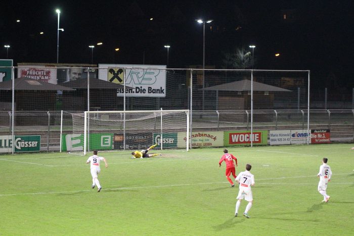 63. Minute: Rene Obendrauf passte nach rechts zum mitgelaufenen Raphael Kniewallner, dieser setzte sich im Laufduell gegen Rössl durch und anstatt selbst den Abschluss zu versuchen, spielte er den Ball nach links weiter zum heranstürmenden Mittelfeldspieler Andreas Lackner, der sich diese Gelegenheit nicht nehmen ließ und mit seinem Schuss aus spitzem Winkel den gegnerischen Goalie zum zweiten Mal an diesem Tag das Nachsehen gab. Das war das 4:0.