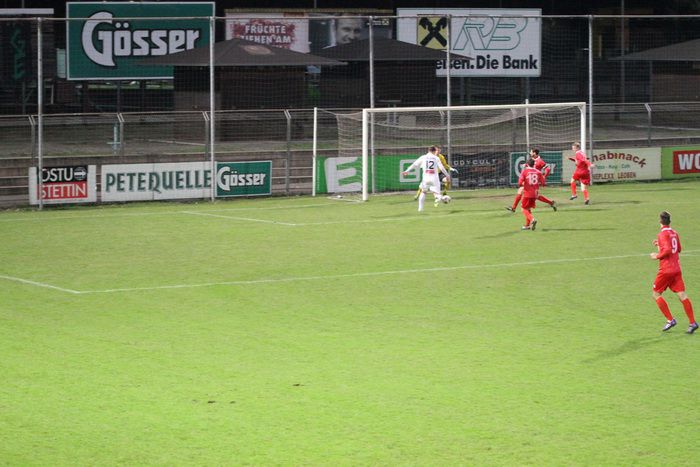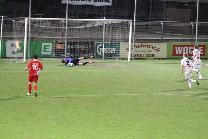 Eine gute Gelegenheit fand Leobens Goalgetter Marcel Steiner in der 68. Minute vor. Sein Schuss landete allerdings im Außennetz.