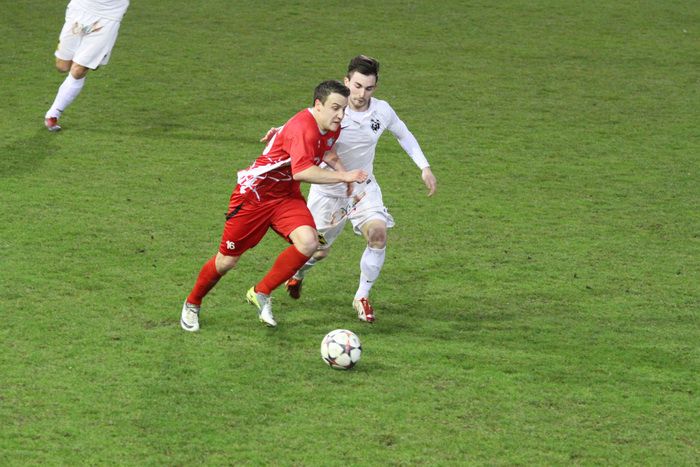 Petkov schiebt die Kugel an M. Schadler vorbei.