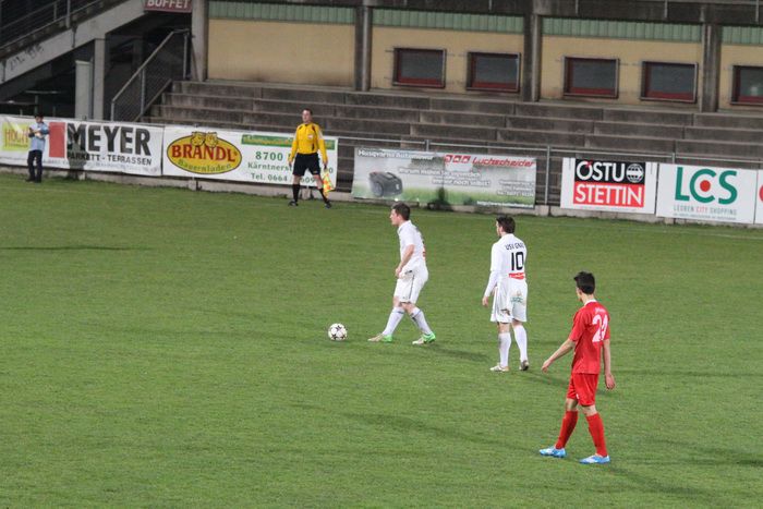 Stadion Leoben, 150 Zuseher, SR Komornyik, Ass. Cetin, Mag. Koren.