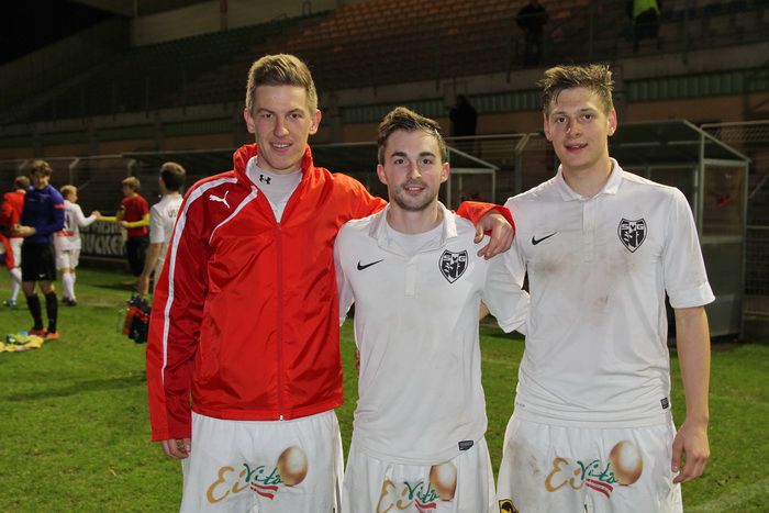 Der zweifache Torschütze Andreas Lackner (mitte) mit den beiden anderen Torschützen, Rene Obendrauf (links) und Daniel Haas.