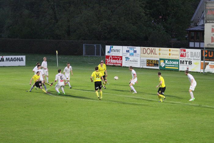 Auf der Gegenseite beförderte Andreas Lackner den Ball doch deutlich am langen Eck vorbei (38.). In der 41. Minute donnerte Matthias Schadler einen Freistoß in die Mauer, daraus wurde ein blitzschneller Konter der Gastgeber. Teuschler zog über die linke Seite in den Strafraum der Gnaser, Roth konnte mit seiner Abwehr das Ärgste verhindern, Wohlmuth klärte zur Ecke.