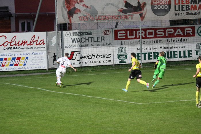 Bald darauf kamen die Gleisdorfer über die linke Seite in den Strafraum, Teuschler fand mit seinem Schuss aus spitzem Winkel jedoch in Goalie Roth einen Abnehmer (63.). David Böhmer verzog bei einem Distanzschuss (68.). Einen Schuss von Krempl aus rund 25 m konnte Roth abwehren (78.). Färber setzte per Kopf eine Driesner-Flanke knapp über die Latte ins Torout (80.).