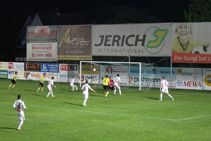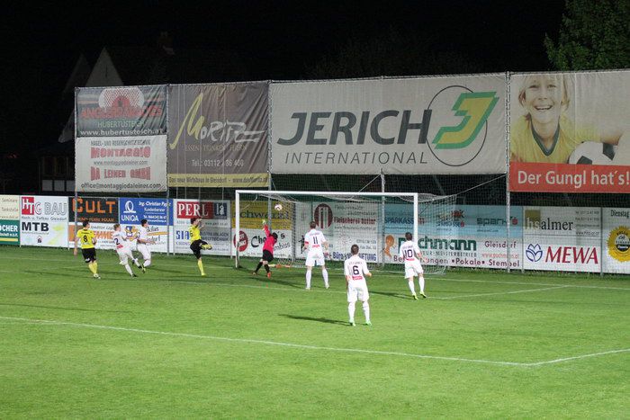Einen Flankenball von Driesner köpfelt Färber (2.v.li) knapp über die Querlatte