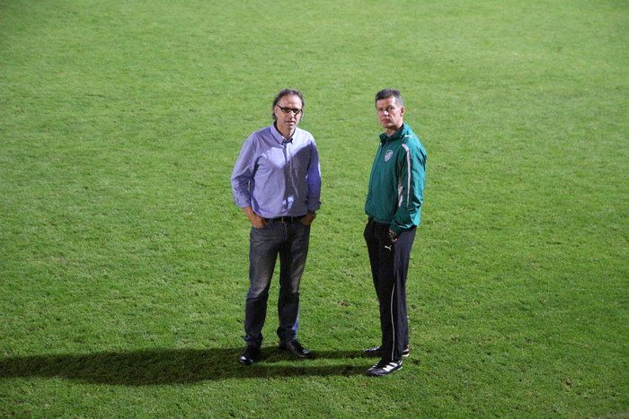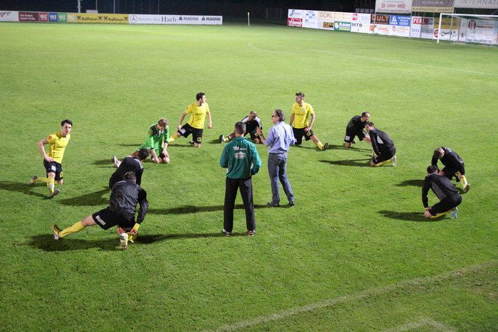 Nachbesprechung bei den Gleisdorfern nach Schlusspfiff.
