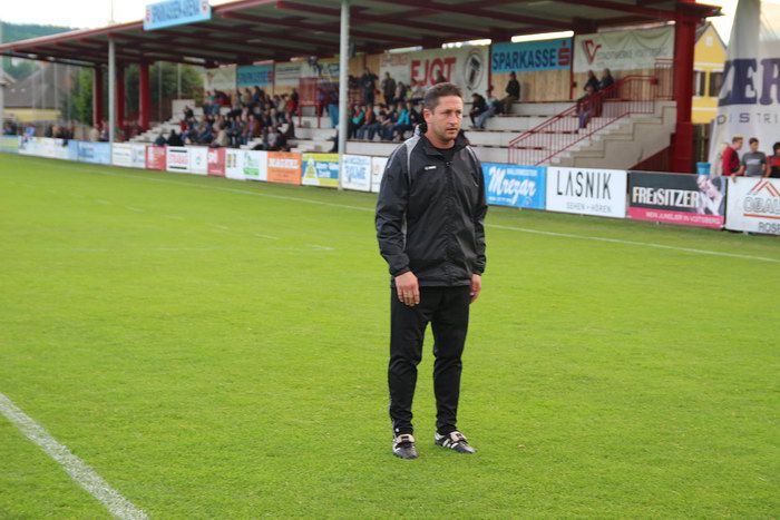 Voitsberg-Trainer Martin Amerhauser vor der Tribüne.