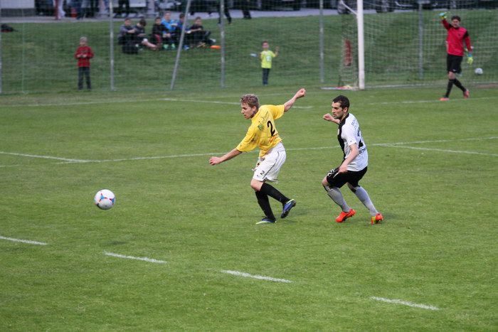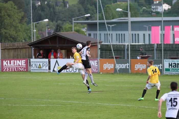 Kopfballduell zwischen Christoph Haas (links) und Michael Grischenig.